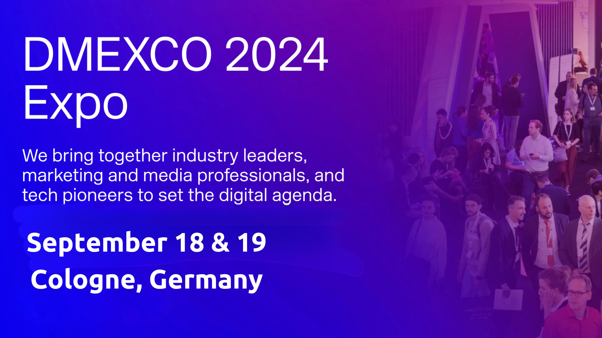 We’re heading to Cologne for DMEXCO 2024, the ultimate networking event for marketing, media, and tech professionals. Come meet our team and let’s explore how we can collaborate to drive digital transformation. Together, we’ll navigate the opportunities and challenges that lie ahead in this dynamic landscape.