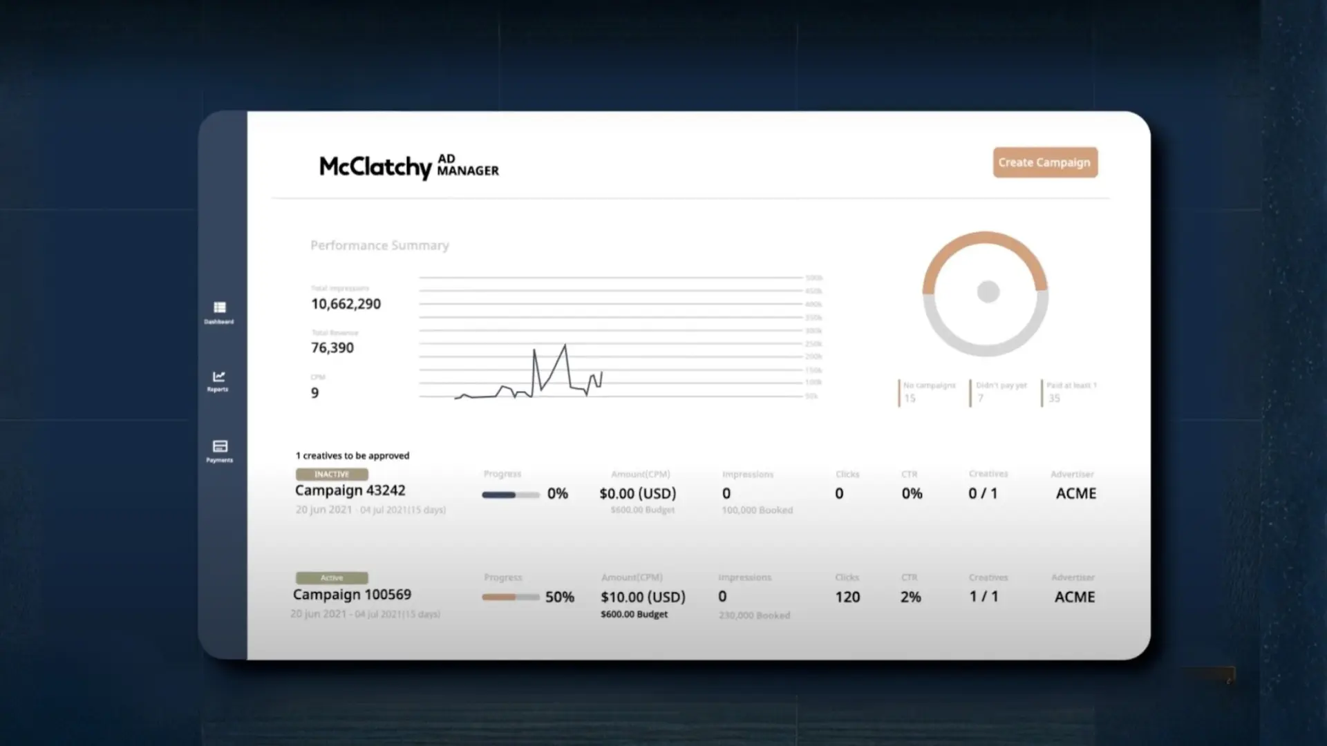Our Ad Manager platform allows advertisers to reach a larger, targeted audience and control all aspects of their advertising budget, said Jane Howard, Senior VP of Advertising at McClatchy.With features like real-time campaign reporting, instant access to ad placements, and brand-safe content alignment, it’s a holistic marketing approach that is perfect for new and existing customers.